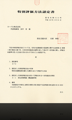 ROVAL产品由日本国土交通大臣根据 [关于加强住宅品质保证的法律规定] (品质确保法),通过 [特别评价方法] 进行评价而取得认定(特认)。