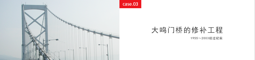 大鸣门桥连接着淡路岛和四国,由于常年经受着海风的侵袭,需要定期保养。大桥建成后的10年、也就是1995年,大鸣门桥的照明灯柱进行了修补。桥面两旁的照明灯柱原来是热镀锌的,但是经过多年的使用,原来的镀锌层已腐蚀耗尽出现了点锈。照明灯柱的基座、照明灯的接口等部位用罗巴鲁冷镀锌涂料进行了修补。至今8年过去,还未发现有锈迹。
