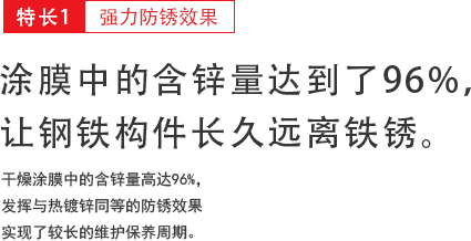 罗巴鲁利用锌的《电化学作用》(阴极保护),长时间保护基材,防止铁锈在涂膜下扩散。
