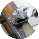 涂膜劣化后大面积产生红锈时,仅用手动工具是难以处理干净的。这时需要使用电动工具彻底除锈。